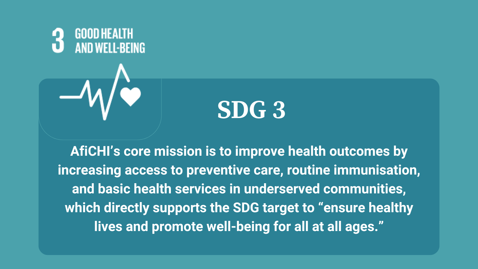Our efforts align with the Sustainable Development Goal 3 (Good Health and Well-being), ensuring that no community is left behind.